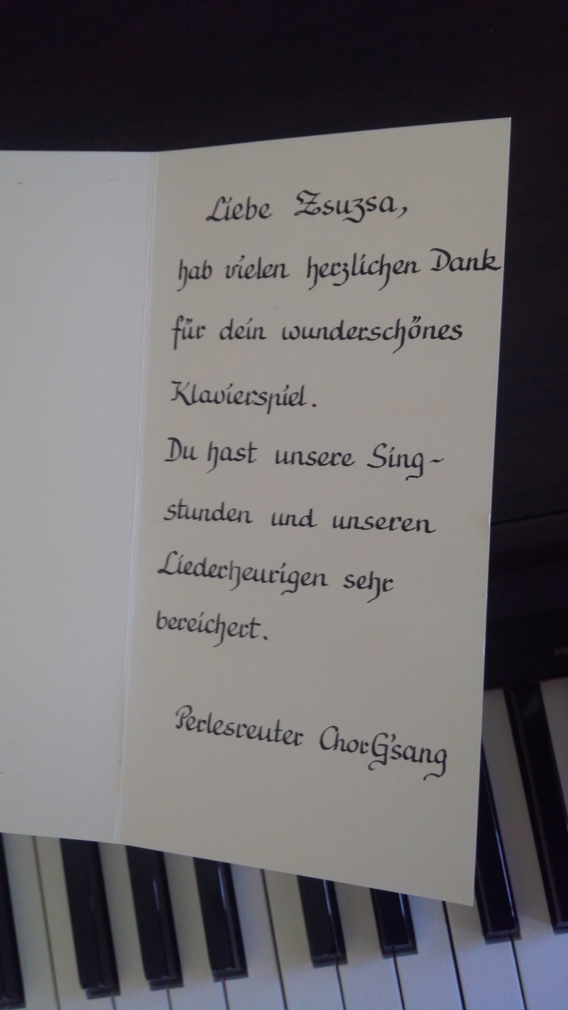 Während dieser 30 oder 45 Minuten steht der Schüler im Mittelpunkt. Wir arbeiten nach seinem Tempo und lernen vor allem Klavierstücke, die ihn weiterbringen und ihm Freude bereiten. Gerne unterstütze ich die Übenden dabei mit viel Geduld. So ist jeder motiviert und hat keinen „Druck“. Allerdings kann ich den Schülern, bei allen Bemühungen und pädagogischer Qualifikation, eines nicht abnehmen: Das Üben.